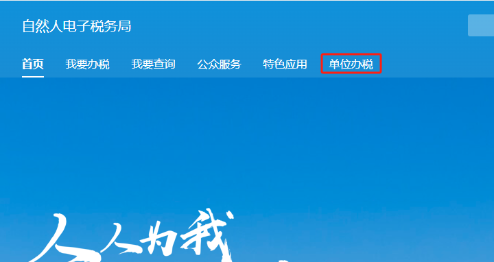 2、点击单位办税(如果没有单位办税入口,就说明你还没有绑定单位办税权限)
