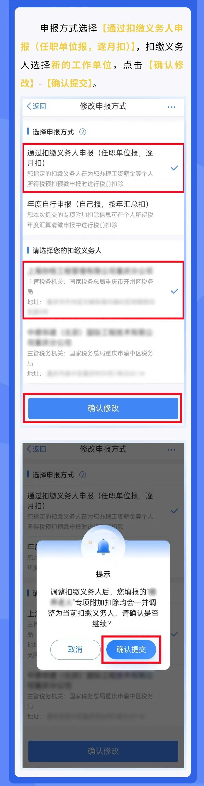 如果您的申报方式选择的是“年度自行申报(自己报,按年汇总扣)”,换单位后无需修改此信息,自己在次年办理个税综合所得年度汇算时,一并享受个税专项附加扣除即可。