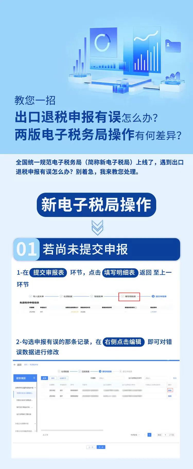 教您一招 | 出口退税申报有误怎么办?两版电子税务局操作有何差异?