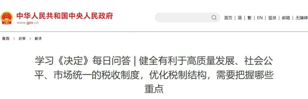 近日,中国政府网站发布《学习<决定>每日问答之健全有利于高质量发展、社会公平、市场统一的税收制度,优化税制结构,需要把握哪些重点》,其中提到稳步推进增值税、消费税、土地增值税等税收立法。