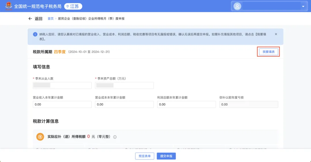 答:进入申报界面后,如您已报送同期财务报表,系统自动获取财务报表信息对“营业收入”“营业成本”“利润总额”本年累计金额进行预填;如预填数据与实际存在差异您可对预填数据进行修改。