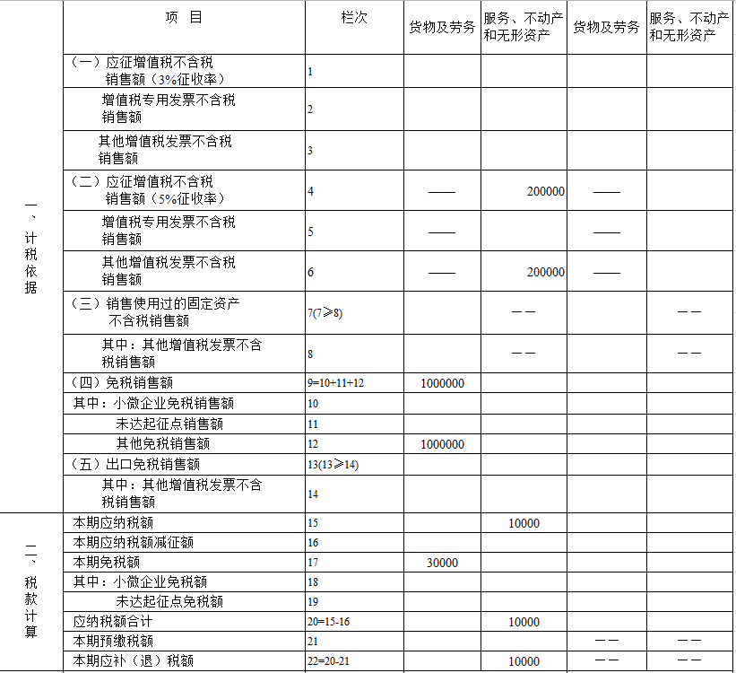 注意事项2:小规模纳税人销售额包括开具普票销售额、开具专票销售额、未开票销售额。如,甲公司为小规模纳税人,当期开具专票5万,开具普通发票20万,未开票收入8万。则甲公司未开票收入与开具普通发票都不能享受增值税免税。小规模纳税人增值税申报表正确填报为您整理如下: