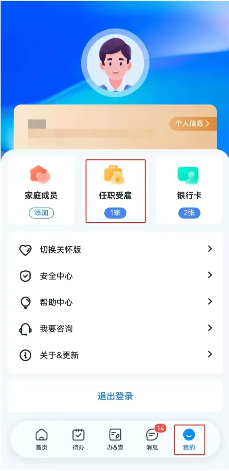 第一步:登录个税App,点击【我的】-【任职受雇信息】,查看是否有新工作单位信息。