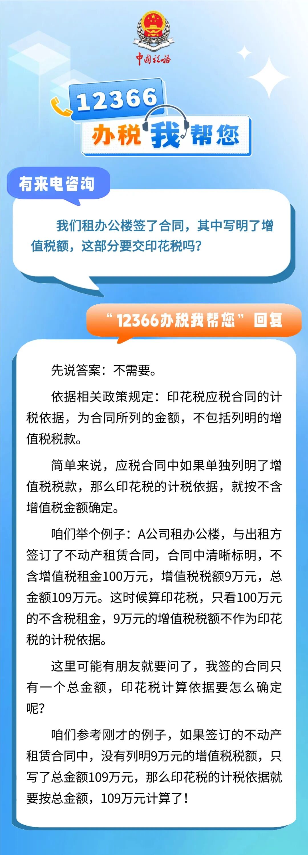 有来电咨询 :我们租办公楼签了合同,其中写明了增值税额,这部分要交印花税吗?一起来看看回复吧↓