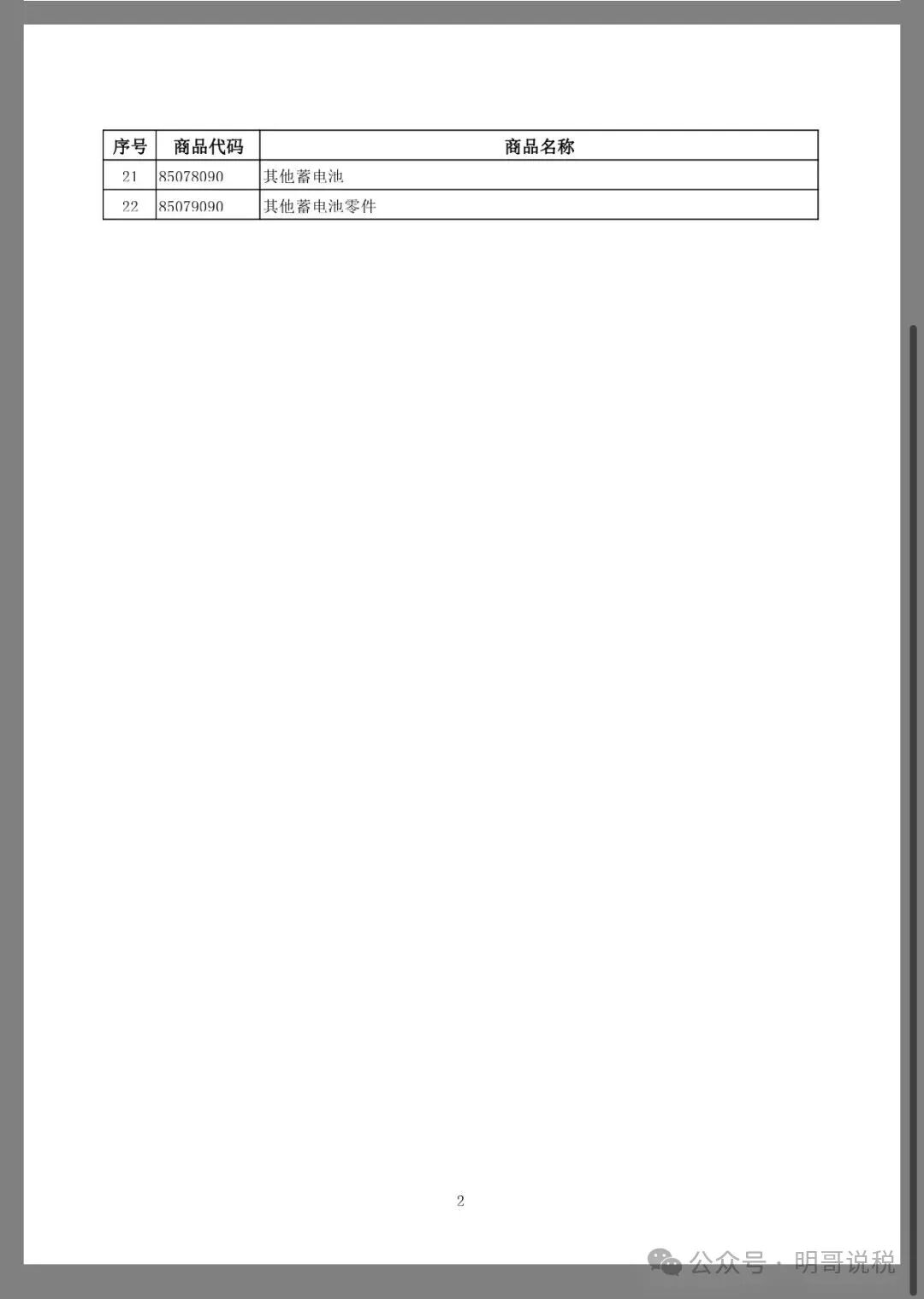 二、自2026年4月1日起至2026年12月31日,将电池产品的增值税出口退税率由9%下调至6%;2027年1月1日起,取消电池产品增值税出口退税。具体产品清单见附件2。