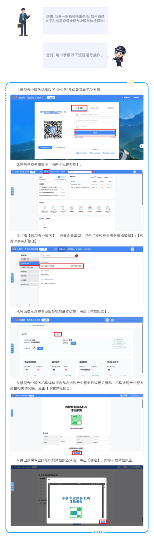 如何通过电子税务局查看涉税专业服务体检报告?