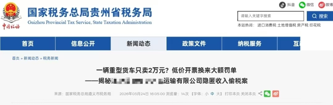 重型货车的市值通常高达数十万元,即便是历经折旧的二手车,也非2万元的低价可匹配。如此悬殊的价格,引起税务人员关注,背后可能存在“低价开票、隐匿收入”的偷税嫌疑。