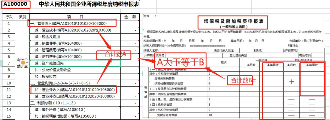 2. 第1行“营业收入”:需≥增值税申报收入(比对不符需写说明)。